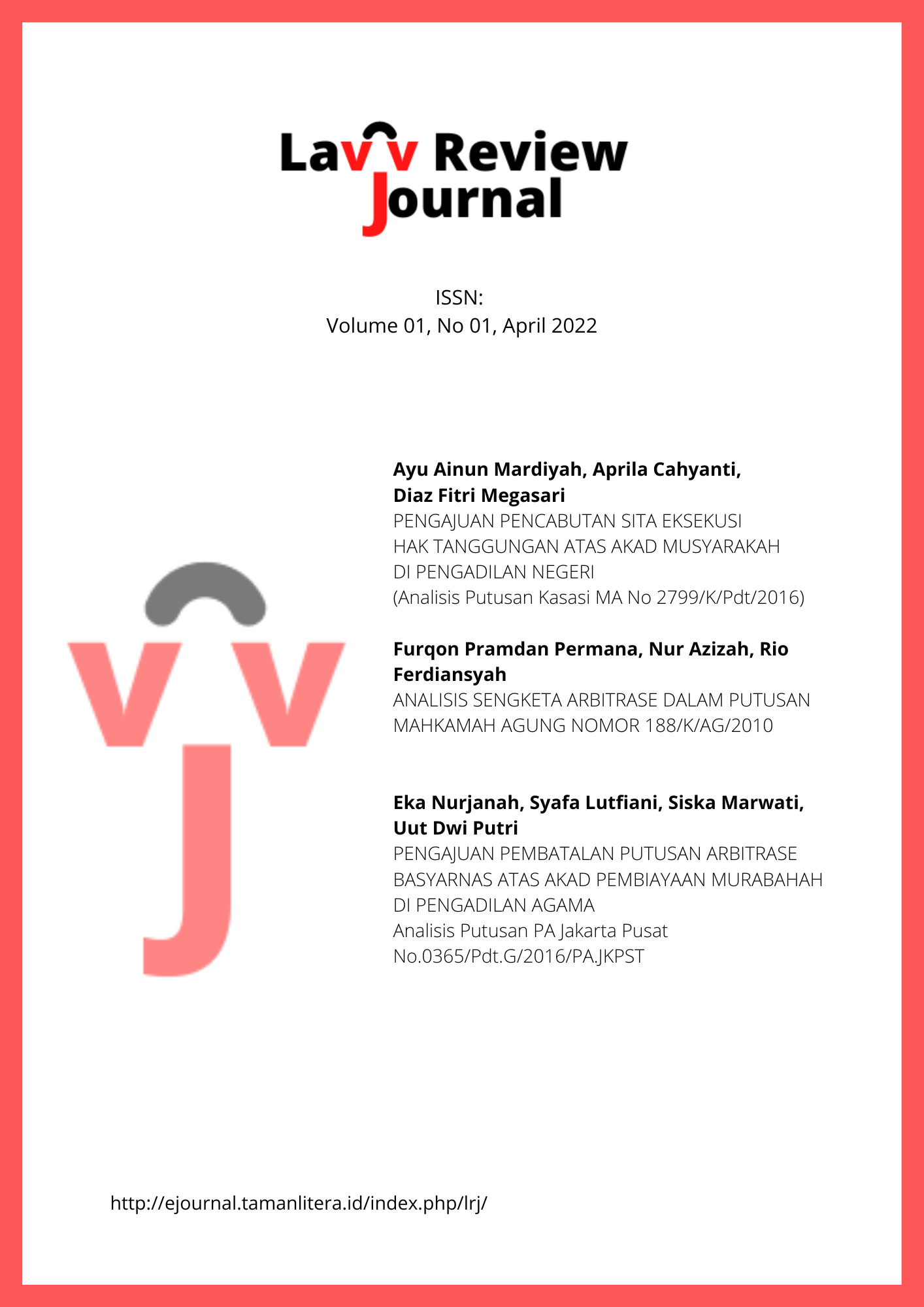 Vol. 1 No. 01 (2022): April, Justice! Law Review Journal