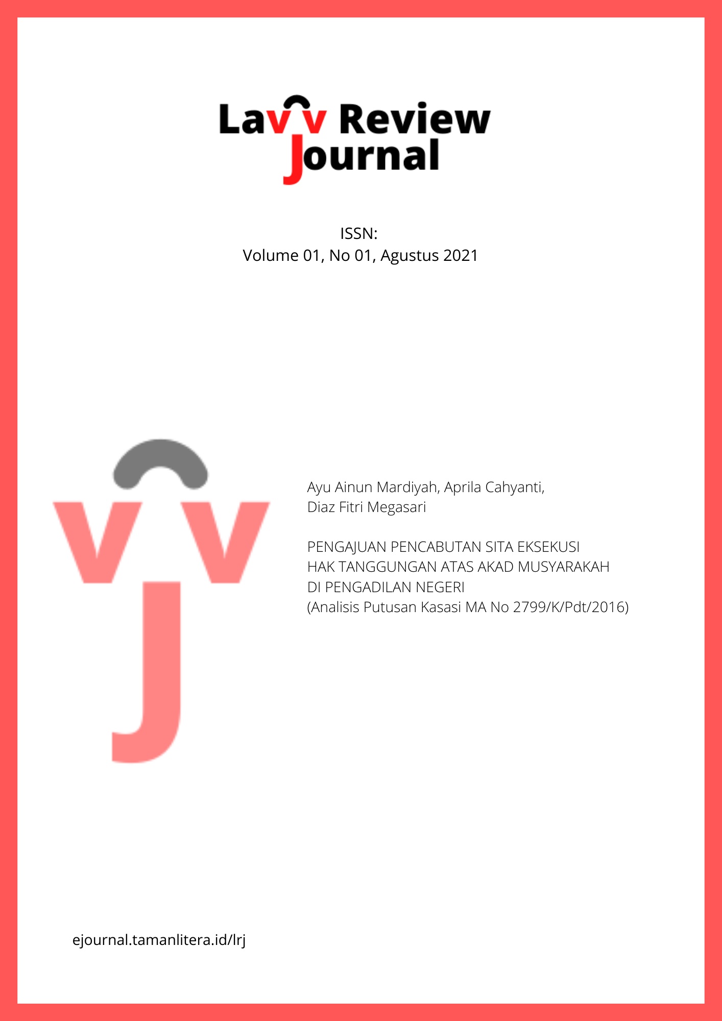 View Vol. 1 No. 01 (2022): April, Justice! Law Review Journal